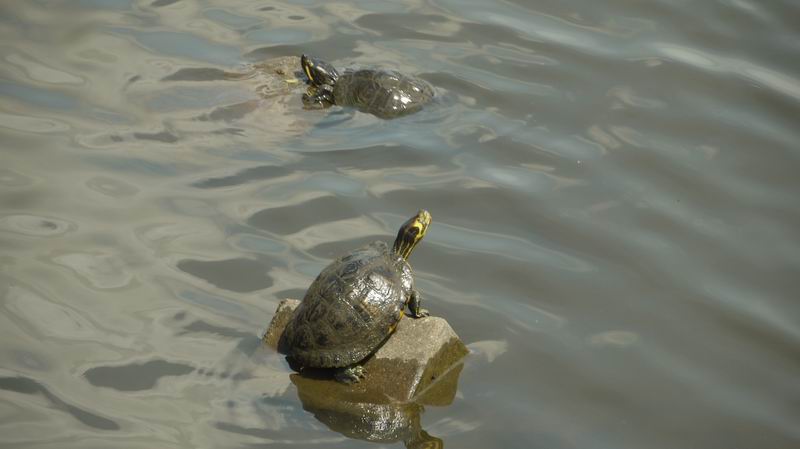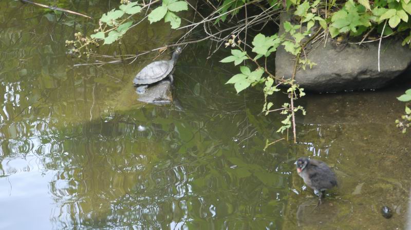 Wassergraben tummeln sich Karpfen, Schildkröten und zahlreiche