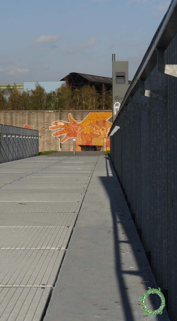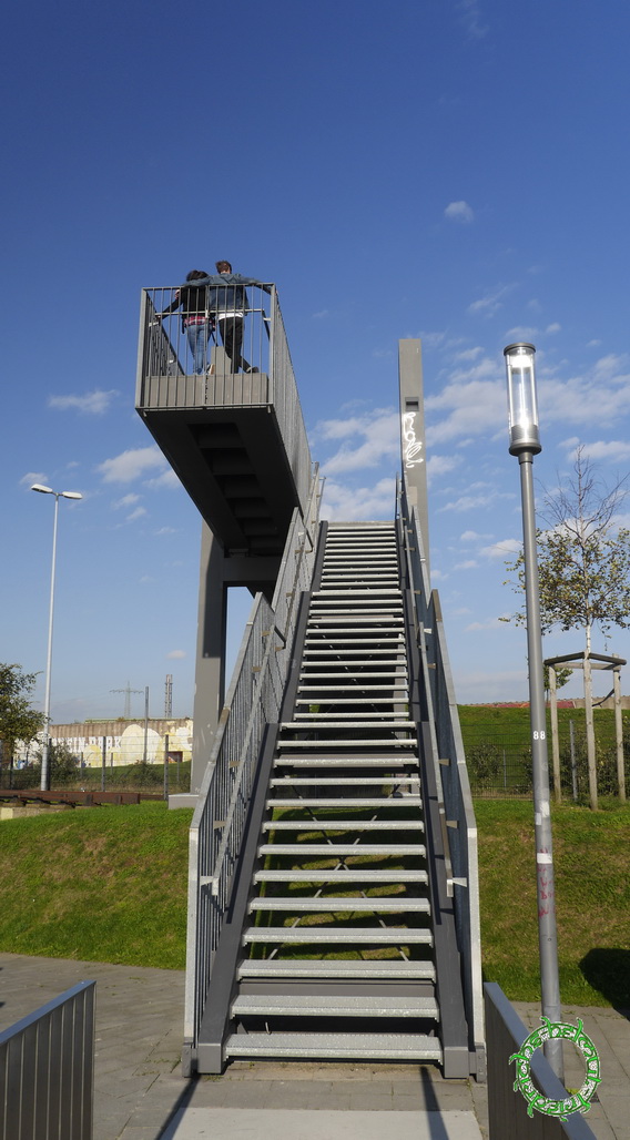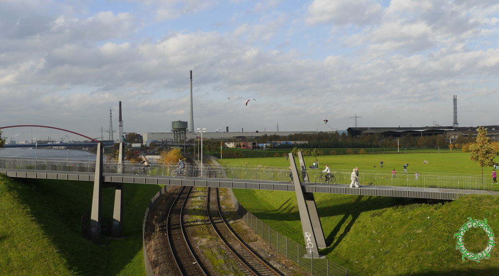 Zugänglich ist das 25 Hektar große, als Wiesenlandschaft modellierte und mit 3000 Bäumen neu bepflanzte Parkgelände. Zwei Brücken und zwei Unterführungen überwinden die parallel zum Rheinufer verlaufende Güterbahnlinie und verbinden so den Park mit seiner 1,4 km langen Uferpromenade. Zu den Frei- und Erholungsflächen gehören Sandstrände an der Promenade mit Holzplateaus als Liegeflächen und Spielanlagen wie Skaterpark und Streetballfeld. Teile der ehemaligen Industrieanlagen sind als Mauerreste stehen geblieben und mit Graffiti verziert. Direkt an das Gelände angeschlossen ist der Fuß- und Radweg der den Rhein querenden Duisburg-Hochfelder Eisenbahnbrücke. Dem Park gegenüber, auf der anderen Rheinseite, liegt eine zu Duisburg-Rheinhausen gehörende ausgedehnte Auenlandschaft. (Quelle - wikipedia)