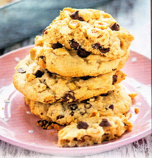 450gr. Mehl, 1 El. Backpulver, 250gr. Zartbitter-Schokotropfen.