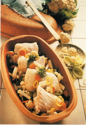 Goldbarschfilet auf dem Gemüsebett 200gr. Lauch, geputzt in feine Ringe