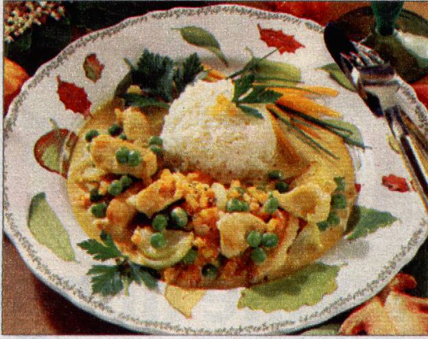 füllen und auf einen Teller stürzen, Hähnchengeschnetzeltes dazu