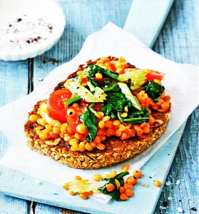 Linsen-Bruschetta mit Spinat