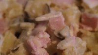 Nun den Schmand unter die Kartoffeln ziehen, erneut kräftig abschmecken