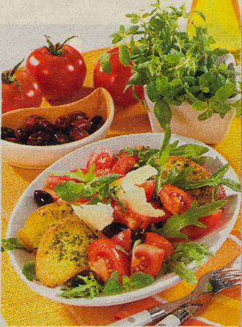 50 ml Olivenöl, 1 kg Tomaten, 100gr. schwarze Oliven,